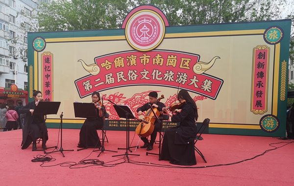 5月22日下午,我院管弦系室内乐专场音乐会在哈尔滨市南岗区第二届民俗文化旅游大集活动现场精彩上演。本次活动由中共哈尔滨市南岗区委员会、哈尔滨市南岗区人民政府主办,哈尔滨市南岗区文化体育和旅游局承办,以“追忆中华传统·创新传承发展”为主题,旨在进一步加强民族文化保护传承、提炼文化内涵、搭建文旅平台、创新形式内容,将文化和旅游有效结合,带动文旅事业和产业健康发展。