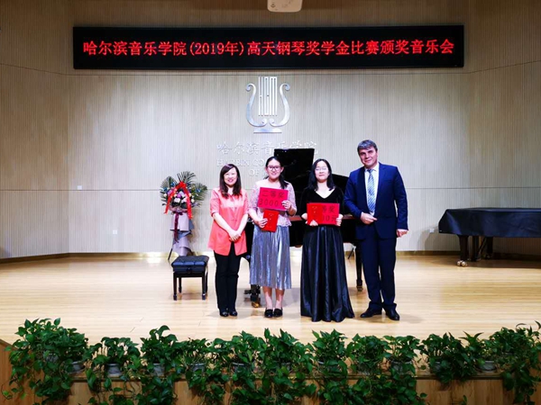 比赛结束后,我院2019年GROTRIAN高天钢琴奖学金比赛颁奖音乐会正式开始。学生处处长赵杰、民乐钢琴联合党总支副书记刘硕龙,以及各位评委专家出席颁奖音乐会。颁奖音乐会上,比赛的各个奖项依次揭晓,出席颁奖音乐会的领导和嘉宾们分别为获奖选手颁奖。随后,获奖选手代表纷纷上台演奏,用美妙的音乐回馈观众,通过精彩的演绎为自己交上了满意的答卷。最后,颁奖音乐会在我院钢琴系俄籍专业课教师安德烈的精彩演奏中圆满结束。