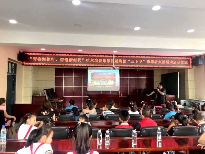 为引领教育广大青年学生切实感受新中国成立70周年取得的巨大成就,在志愿服务中不断增强责任感和使命感,8月2日至7日,由学院团委组织,团委副书记杨琳擘带队,管弦系副教授杨光参加并指导的师生支教团,赴海伦长发小学、海北小学、丰山小学开展了以“青春海伦行·奋进新时代”为主题的“三下乡”社会实践志愿服务支教活动,在亲身体验中了解世情国情,以实际行动投身打赢脱贫攻坚战,投身乡村振兴战略实施,勇做担当民族复兴大任的时代新人。