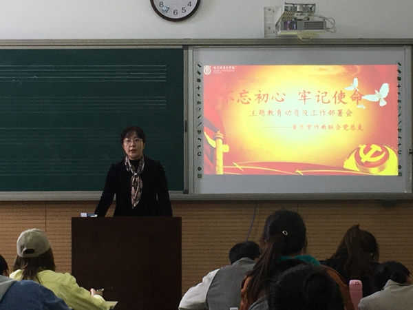 根据学院党委“不忘初心、牢记使命”主题教育工作部署,9月18日下午,音乐学作曲联合党总支在主楼A103室召开“不忘初心、牢记使命”主题教育动员及工作部署会,会议由音乐学作曲联合党总支副书记张海彬主持,全体师生党员参加。