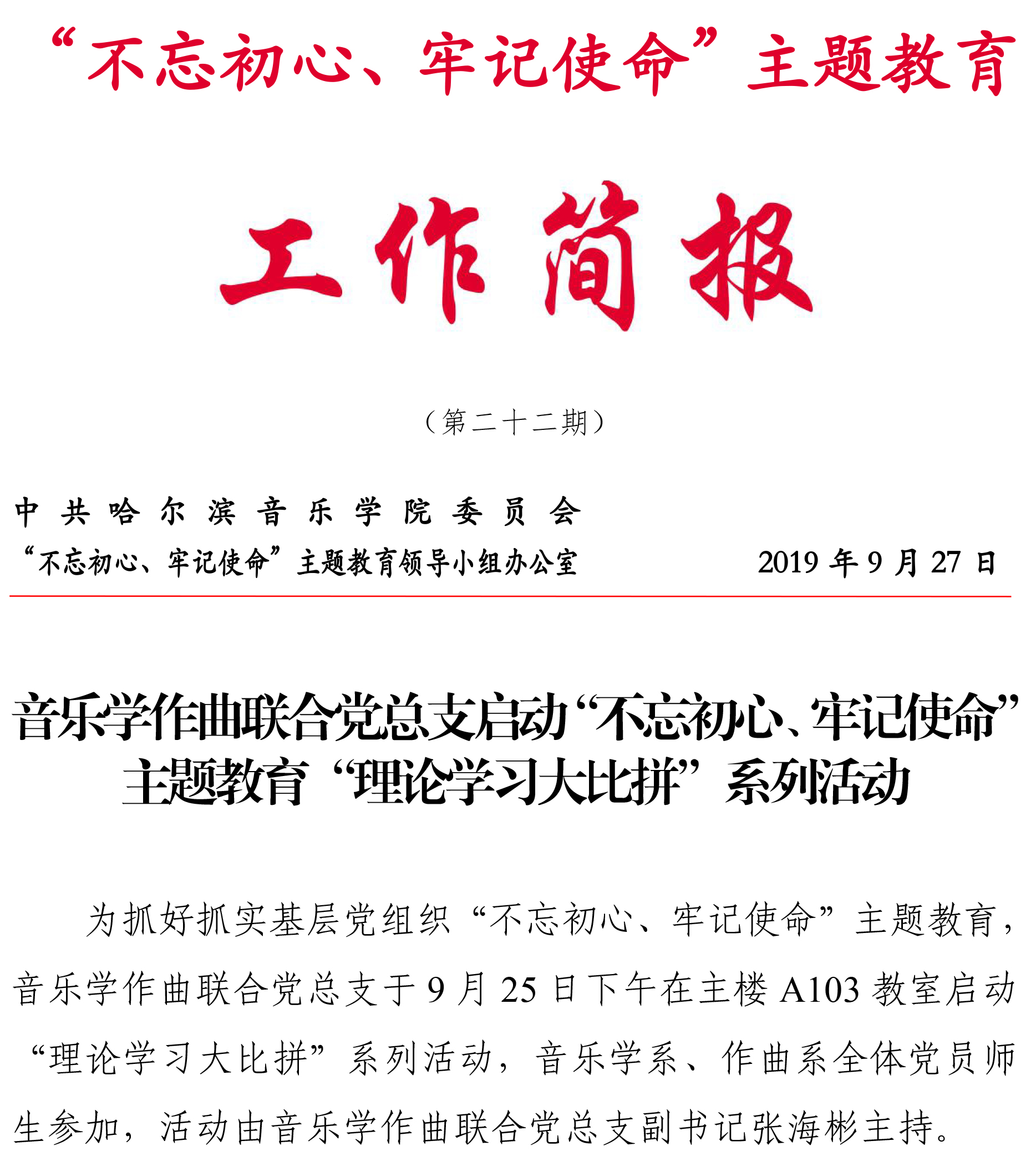 音乐学作曲联合党总支启动“不忘初心、牢记使命” 主题教育“理论学习大比拼”系列活动