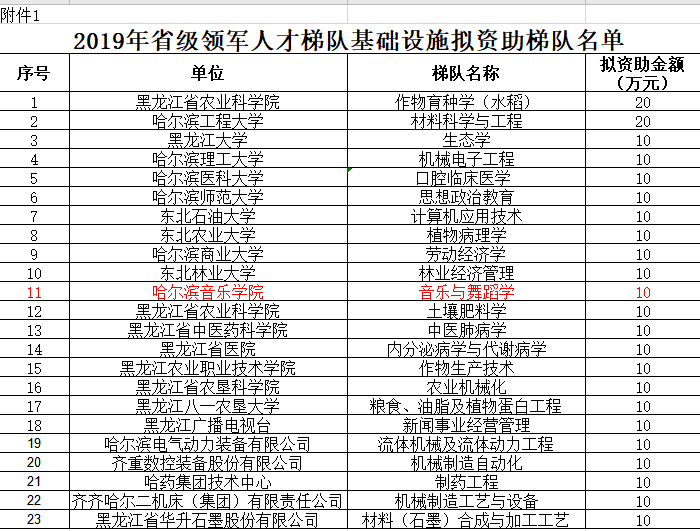 根据《黑龙江省省级领军人才梯队建设资金管理办法》《关于开展2019年省级领军人才梯队资助工作的通知》文件精神,我院音乐与舞蹈学学科获批2019年省级领军人才梯队基础设施建设资助,获批资助10万元。