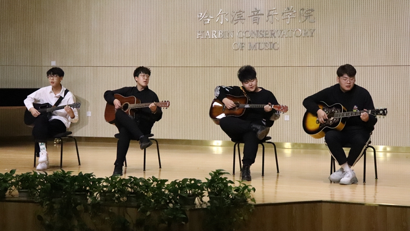 活动分为三个篇章。第一篇章以“忆曲折历程,回眸历史”为主题,民乐党支部王丹婷老师主讲了《一堂历史课》,钢琴党支部许晓薇老师、石丹老师演奏双钢琴《皮黄》,学生吉他弹唱《映山红》;第二篇章以“二谱青春乐章,评述现在”为主题,演绎了钢琴、手风琴重奏《长征·希望》,歌曲《我们都是追梦人》,舞蹈《青春风采》;第三篇章以“守初心使命,展望未来为主题”,演奏了打击乐《龙腾虎跃》,诗朗诵《再出发》,活动在歌曲《鼓楼》、《我爱你中国》中落下帷幕。整场演出高潮迭起、精彩纷呈,不时赢得现场观众的热烈掌声。