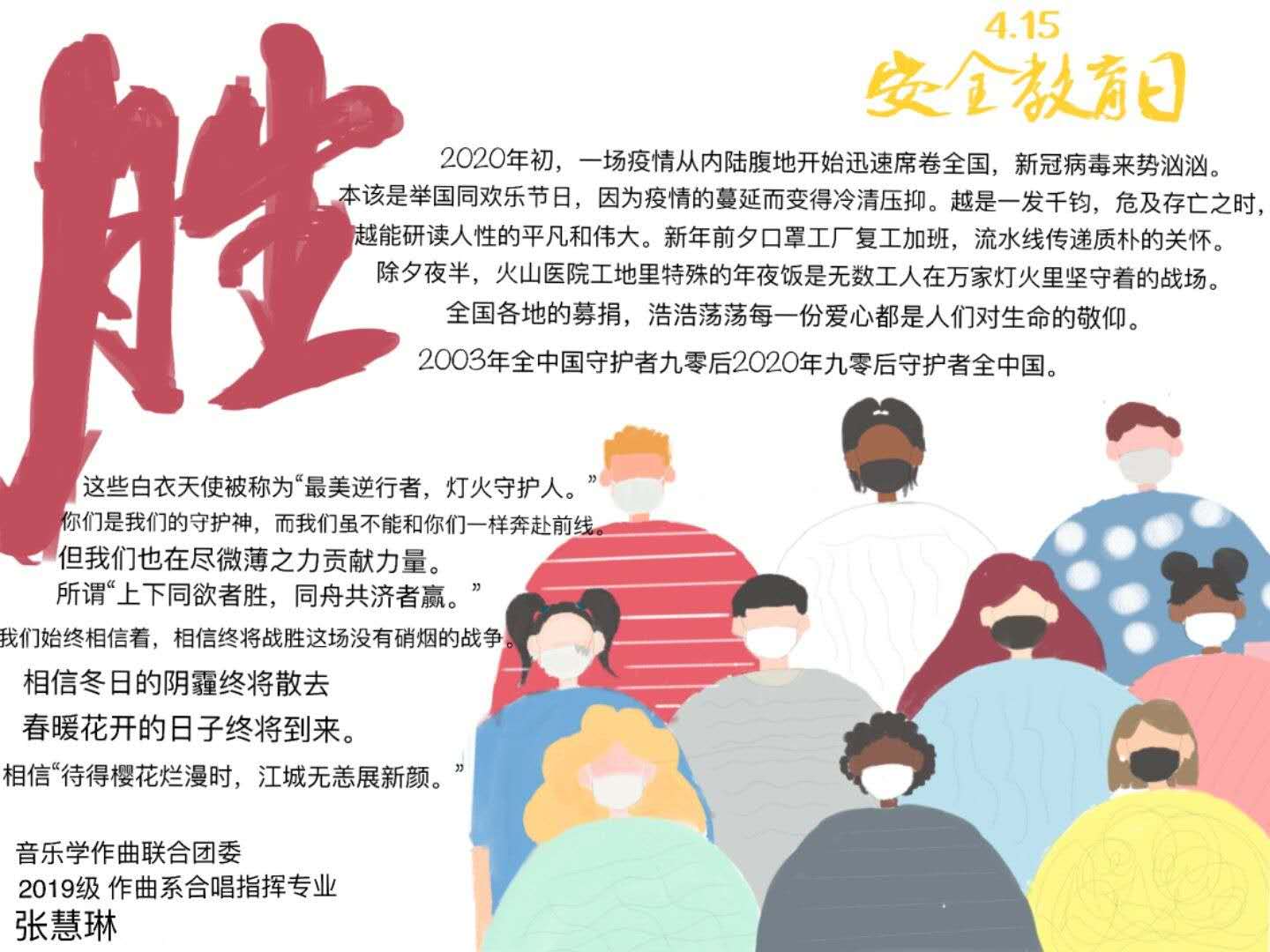 2020年4月15日是《中华人民共和国国家安全法》颁布实施以来的第5个全民国家安全教育日。为增强学生国家安全意识,音乐学作曲联合党总支紧紧围绕总体国家安全观,切实维护人民安全,结合当前疫情防控形势和学院工作实际,组织学生通过各种形式收看“全民国家安全教育日高校公开课”。