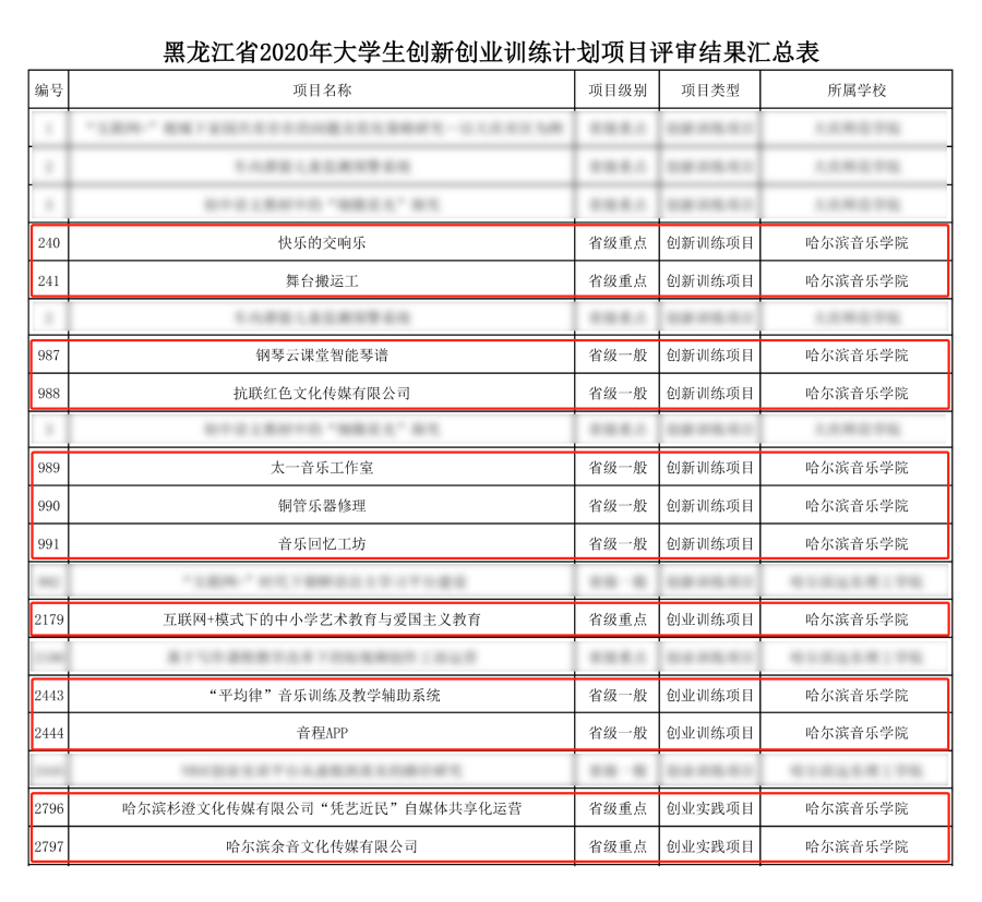 近日,黑龙江省教育厅、省创指委下发了《关于公布2020年省级大学生创新创业训练计划项目的通知》,我院《哈尔滨余音文化传媒公司》《“平均律”音乐训练及教学辅助系统》等12个项目获批立项,其中创新训练项目7项,创业训练项目3项,创业实践项目2项,获批立项涵盖5个重点项目、7个一般项目。