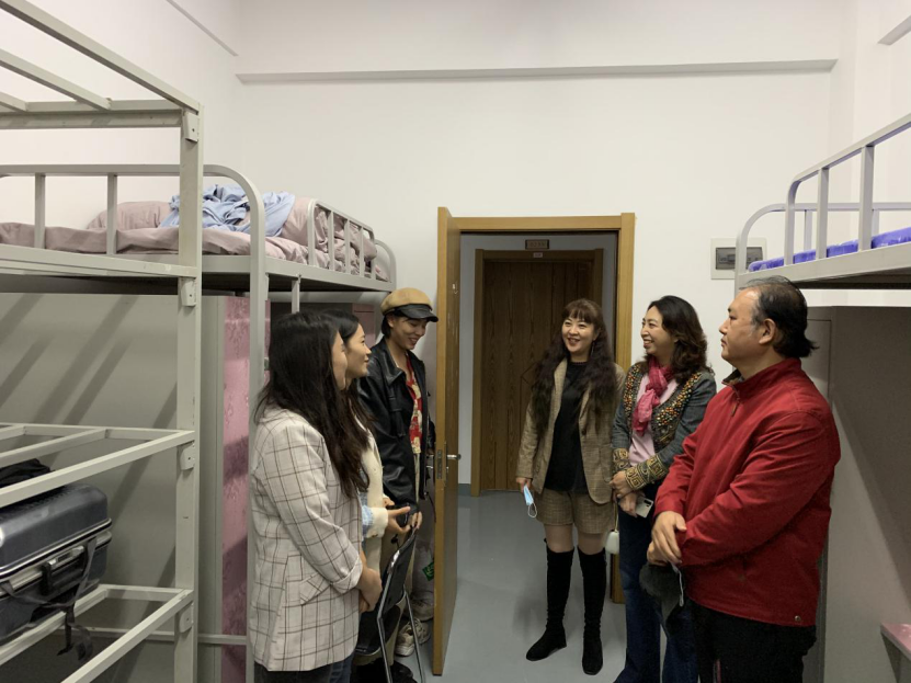 走进寝室,总支及教学系领导一行对新生的到来表示诚挚欢迎,亲切询问大家来自哪里、对学院环境是否满意、生活中有什么具体困难等,并帮助学生及时解决缺少被褥行李等现实困难;张海彬提醒大家要提高安全防范意识,遵守疫情防控相关要求,保证人身和财产安全,在学习生活中,室友之间要相互理解、相互帮助,营造良好的学习生活氛围;各系主任深入了解学生专业学习经历、学习诉求等,提醒学生要努力学习专业课程,不断提升自身艺术素养,以优异的成绩回报父母与社会。在交谈中,学生们纷纷表示,一定会认真学习,充分利用好学院给予的教学条件与资源,好好学习专业知识,为音乐文化传承、发展与创新贡献力量。