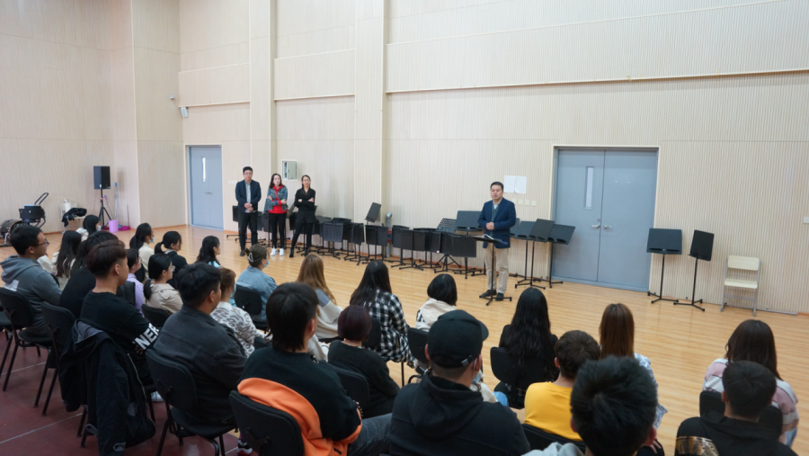 9月21日上午,管弦党总支举行2020级新生见面会。管弦党总支副书记杨玲、管弦系副主任杨光、辅导员王鹏飞、新生教师班主任史博雅、新生班主任以及2020级全体本科生、研究生参加了本次大会。会议由王鹏飞主持。
