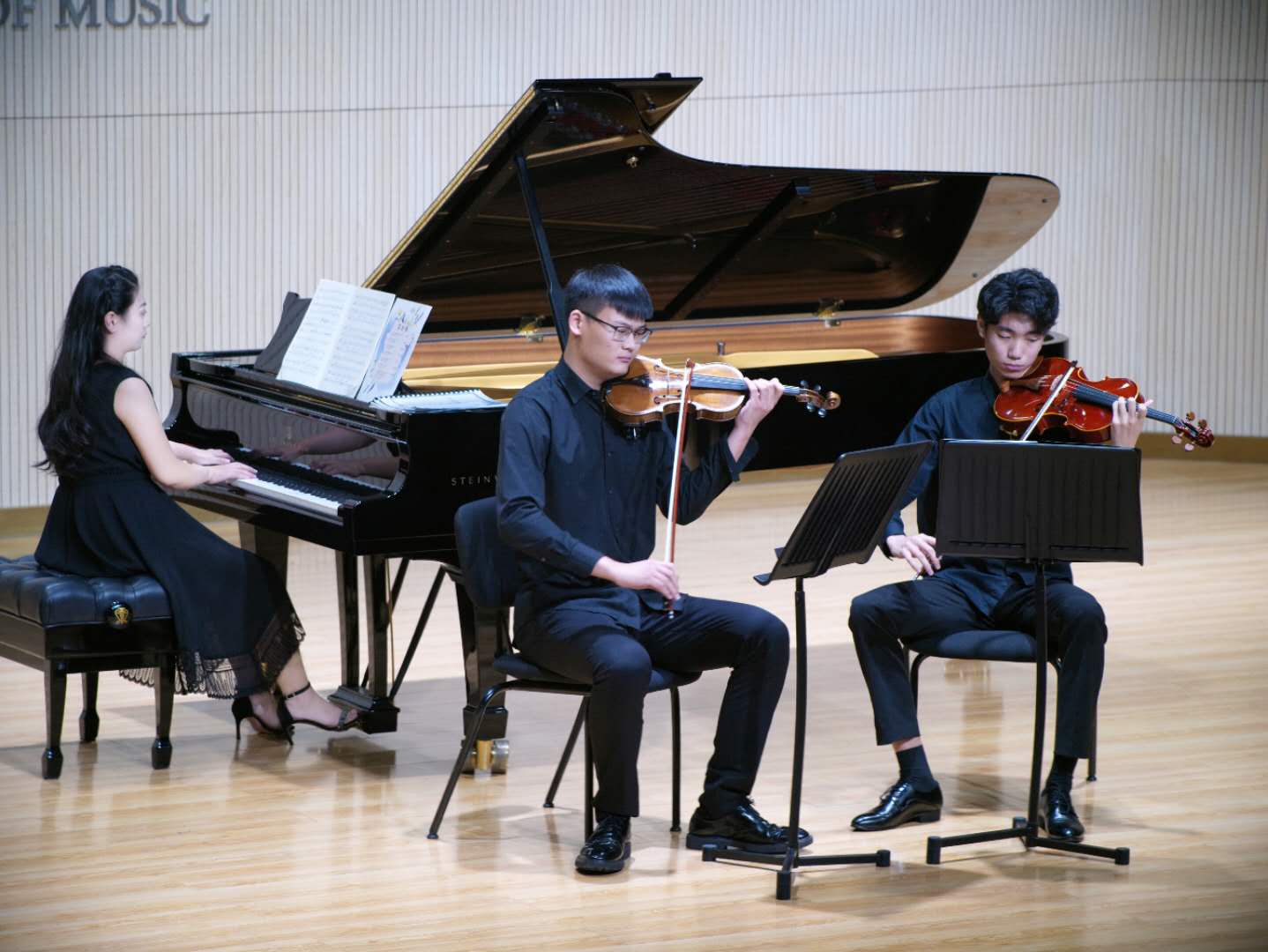 音乐沙龙开场以一首华丽炫技的维厄唐《C小调中提琴随想曲》拉开序幕,随后,学生们又相继演奏了泰勒曼的《G大调中提琴协奏曲》、霍夫曼斯特的《D大调中提琴协奏曲》等经典的中提琴协奏曲。最后,以肖斯塔科维奇的钢琴三重奏为尾声,在欢快愉悦的气氛中圆满结束。