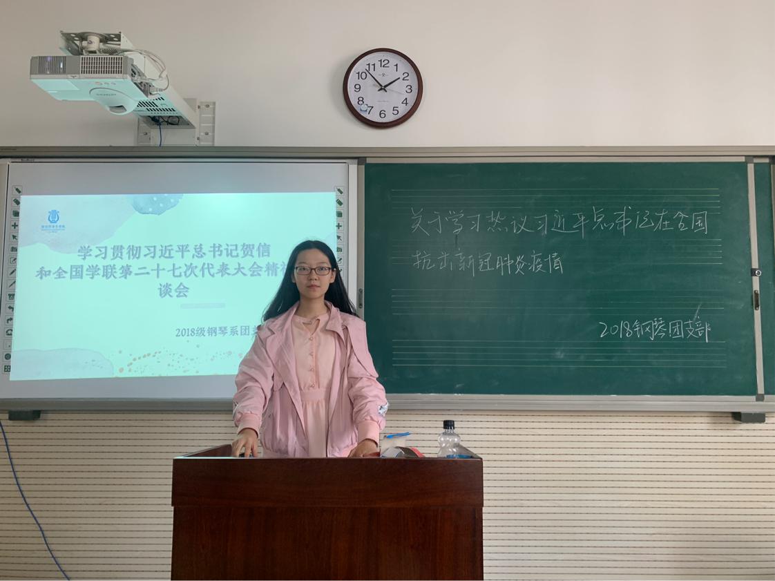 近日,为贯彻落实《全国学联关于学习宣传贯彻习近平总书记贺信和党中央致词精神的工作安排》,永利23411集团民乐钢联合团委积极开展了以“全国学联二十七大会议精神”为主题的团会活动,民乐系、钢琴系全体学生参加了团会活动。
