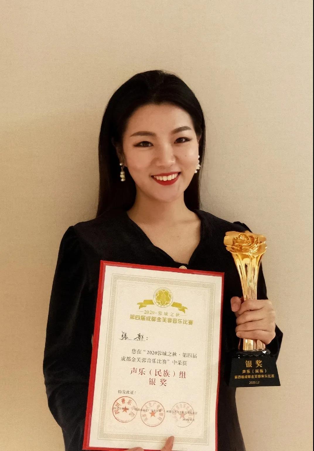 12月2日,第四届成都“金芙蓉”音乐比赛在成都城市音乐厅落下帷幕,我院民族声乐系2020级硕士研究生张影获声乐(民族)组银奖。