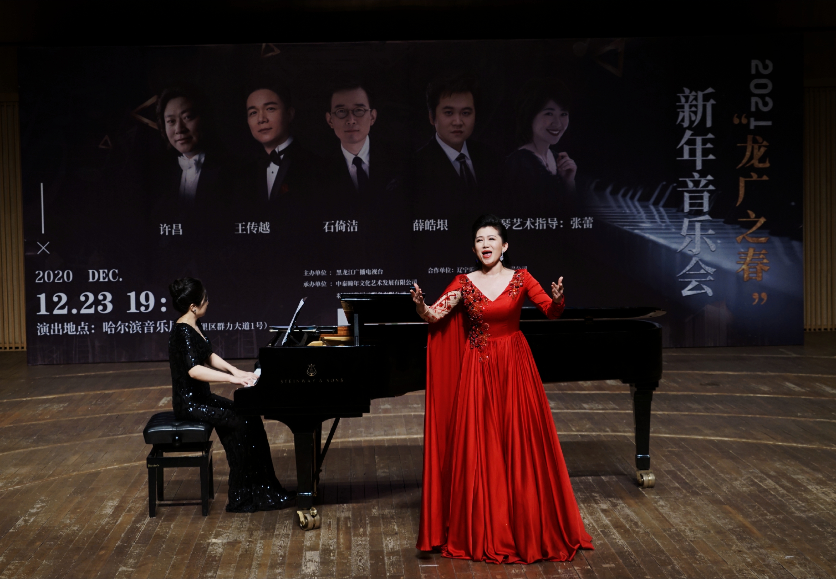 12月23日19:00,由黑龙江广播电视台出品,黑龙江音乐广播、黑龙江高校广播承办的−−2021“龙广之春”新年音乐会迎春唱响。著名男高音歌唱家石倚洁、王传越、薛浩垠、许昌齐聚哈尔滨音乐厅,为冰城观众奉献了一场国内一流水准的高水平音乐会。我院声乐歌剧系2019级研究生鄂振明、青年教师艺术指导蔡琰受邀担任此次新年音乐会的表演嘉宾。