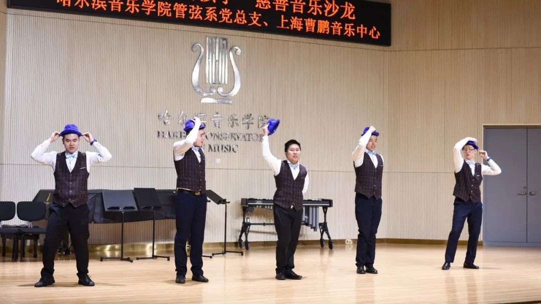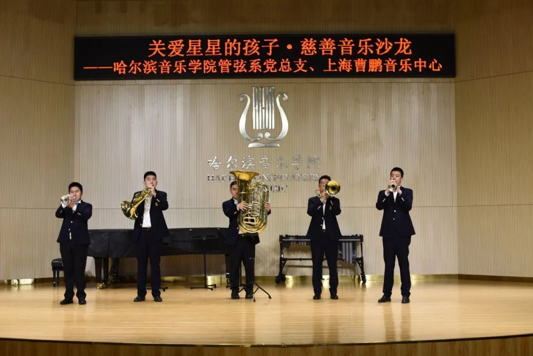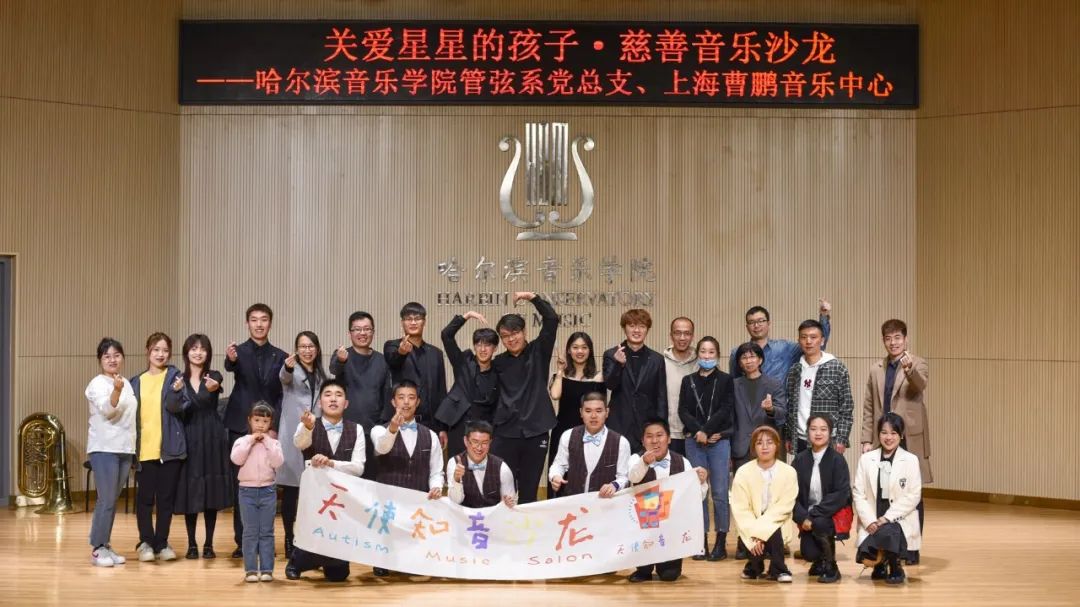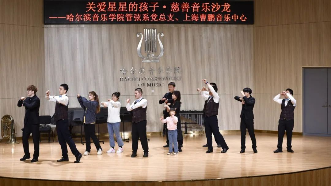 此次活动旨在以音乐为媒介,让患有自闭症的儿童在旋律的熏陶中建立起与外界交流的平台。管弦系学生志愿者们带领上海曹鹏音乐中心自闭症儿童参观了哈音校园,并在西实训C204演奏厅进行了精彩的演出。铿锵有力的铜管重奏《打靶归来》《卡门序曲》《巡逻兵》《喀秋莎》《中国军魂》,温婉动人的弦乐室内《春》,浪漫悠扬的萨克斯独奏《至少还有你》《听海》赢得了观众的阵阵掌声。自闭症儿童们也带来了俏皮可爱的舞蹈《少年》《童谣》。