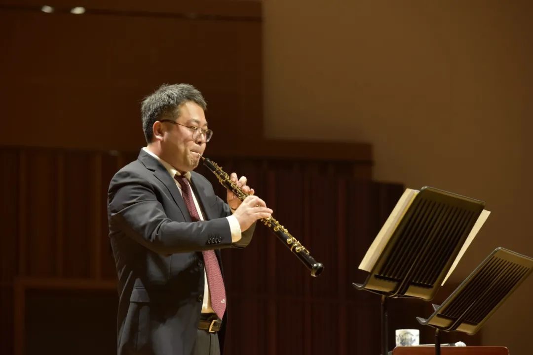 为庆祝中国共产党成立100周年,传承红色基因,4月23日,管弦系党总支在学院音乐厅举办“建党百年·传承中国音乐”专场音乐会第二场——“双簧管的红色印记”杨光双簧管独奏音乐会。本场音乐会由管弦系副主任、副教授、中俄交响乐团团长杨光和管弦系艺术指导刘威辰共同演绎。副院长宋立权,纪委书记、党委委员张丽波出席音乐会,部分单位负责人及教学系师生参加了音乐会。