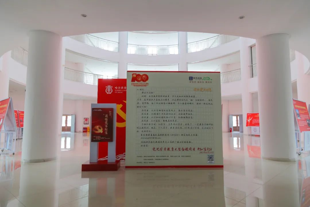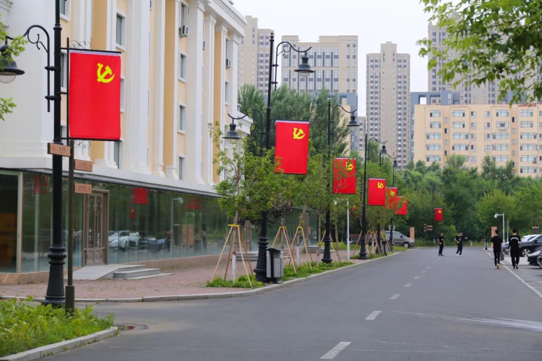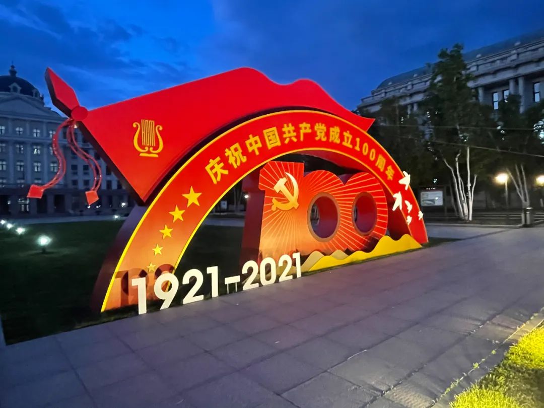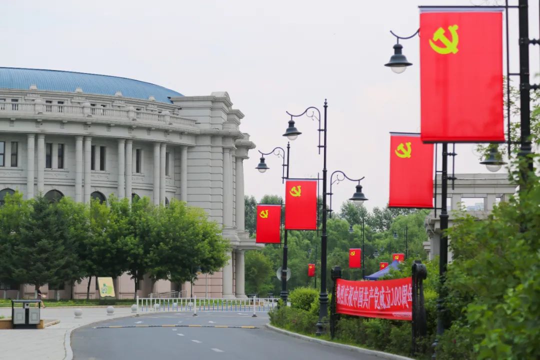 编者按:“七·一”临近,哈音校园内党史、党旗主题美陈、文宣、展览布置完毕,鲜红的党旗扮靓了美丽校园,金色的党徽在蓝天白云下熠熠生辉,烘托出全院师生迎接中国共产党成立100周年的喜庆氛围。