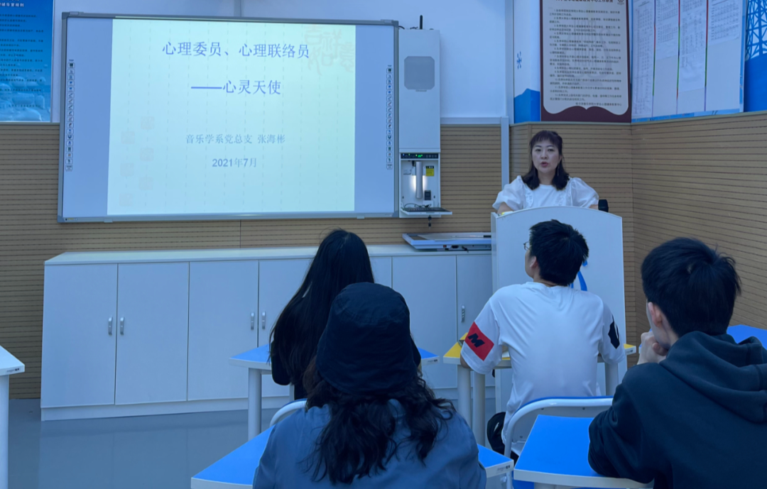 为推进“我为群众办实事”深入开展,进一步提升心理委员、心理联络员队伍工作水平,加强学生心理健康教育体系化建设,7月1日下午,由学院心理健康教育中心和音乐学系党总支共同举办的心理委员、心理联络员培训会在主楼A408室正式开讲。音乐学系党总支辅导员孟美思、新入职辅导员及音乐学系全体心理委员、心理联络员参加了培训。培训由音乐学系党总支书记、学院心理健康教育中心兼职教师张海彬担任主讲。