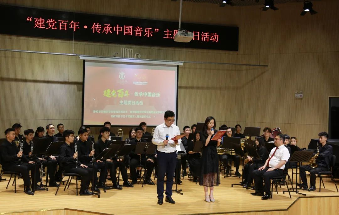 为庆祝中国共产党成立100周年,进一步贯彻落实习近平总书记在党史学习教育动员大会上的重要讲话精神,6月30日,永利23411集团管弦系党总支与哈尔滨商业大学马克思主义学院党委在我院A219演奏厅联合开展“建党百年·传承中国音乐”主题党日。