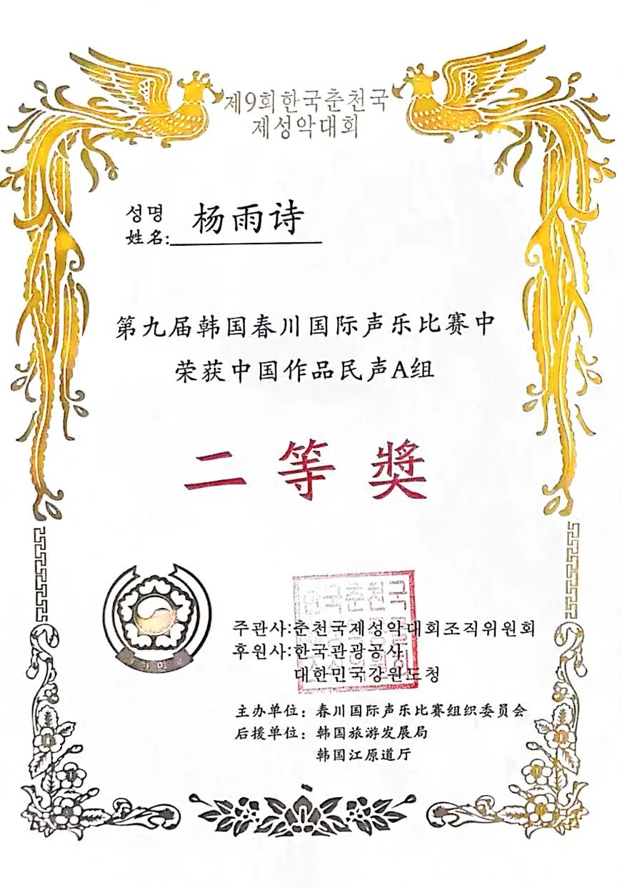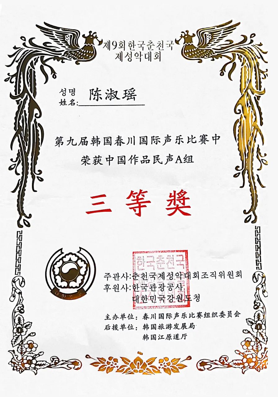 “韩国春川国际声乐比赛”是亚洲顶级的声乐比赛之一,每年举办一届,至今已成功举办九届。目前,中国已有多所音乐学院、专业艺术院团、艺术学院、师范类院校的教师和学生参加过比赛。