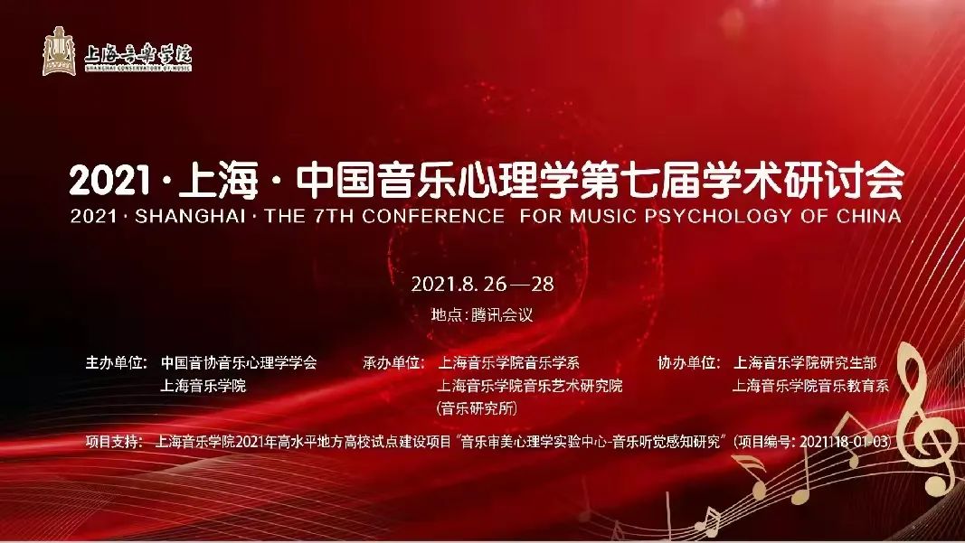 8月26-28日,由中国音协音乐心理学学会、上海音乐学院主办的中国音乐心理学第七届学术研讨会利用以线上交流的形式召开。