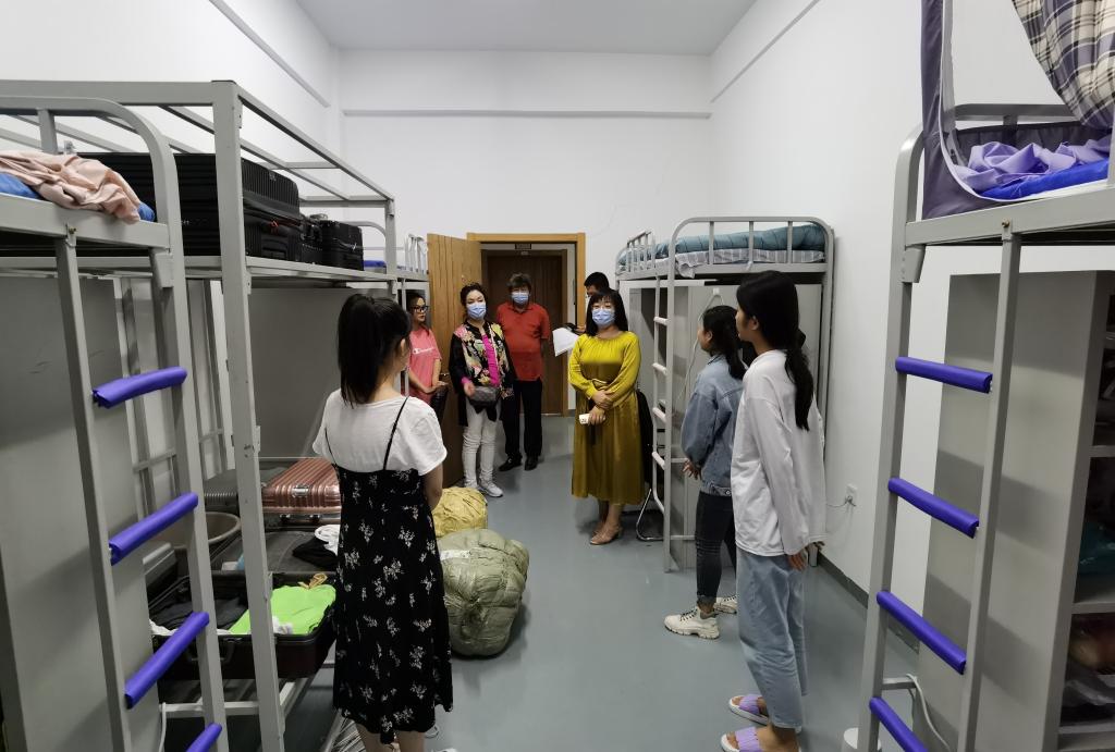 每走进一间宿舍,老师们都会仔细查看的学生生活环境。老师们在交谈中叮嘱同学们尽快适应新环境,同学之间要相互帮助、相互团结,共同营造和谐向上的氛围,以崭新的精神面貌投入到大学的学习和生活中,努力成为“品德优良、专业优秀、气质优雅”的哈音人。