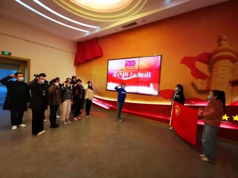 参观过程中,学院学生会主席团成员、2019级音乐学系本科学生马怡佳带领“青马工程”第二期全体学员重温入团誓词。