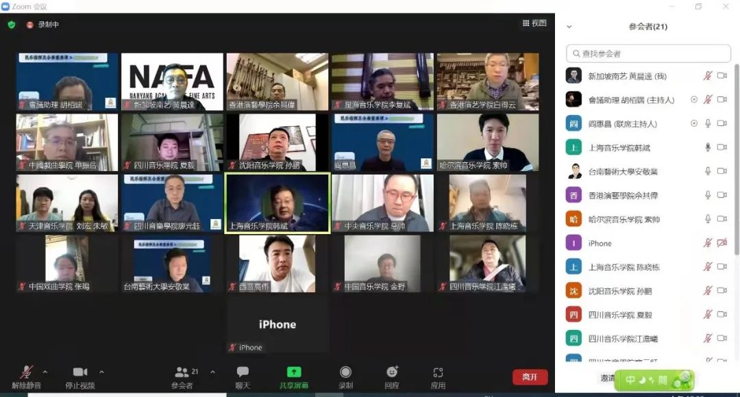 12月12日,由上海音乐学院贺绿汀中国音乐高等研究院主办,中国民族管弦乐研究中心、中华国乐合作发展联盟承办的“2021第二届民乐指挥合奏重奏课云端交流研讨会”通过Zoom平台在云端成功举办。我院民乐系副主任、青年民族乐团常任指挥索帅参会,并做主旨发言。