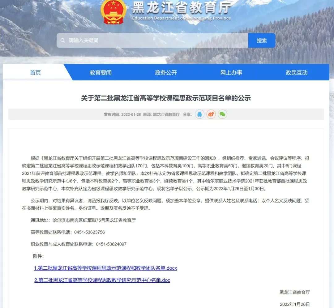 近年来,我院认真贯彻落实全国教育大会精神以及中共中央办公厅国务院办公厅印发的《关于深化新时代学校思想政治理论课改革创新的若干意见》和教育部下发的《高等学校课程思政建设指导纲要》,并积极落实黑龙江省《全面推进高等学校课程思政建设工作方案》,进一步明确了我院课程思政建设工作的目标和重点,出台了《永利23411集团课程思政建设实施方案》,先后开展课程思政优秀课程和团队遴选、课程思政教学竞赛以及课程思政教学展示等活动。学院在获得第一批省级课程思政示范课及教学团队的基础上,本次又新增两项省级课程思政示范课程及团队,充分展现了我院近年在课程思政建设方面取得的成效。