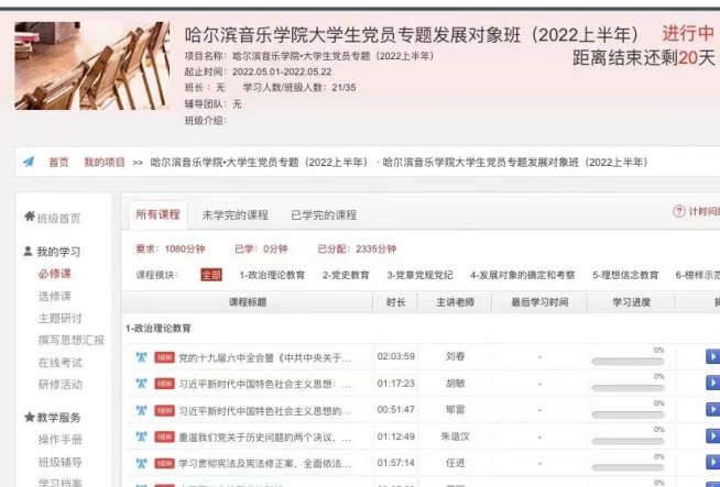 本次党委党校培训班分为入党积极分子班、发展对象班、预备党员班三个班次,共有95名学员参加培训。为更好地适应常态化疫情防控形势下开展教育的需要,培训班充分利用国家行政学院网络平台和优质教学资源,以线上形式开展。培训班以“新时代·新征程·新担当·新作为”为主题,由学校党委党校统一组织,各党总支、党支部协助管理,坚持集中学习和分散学习、专题辅导和个人研学相结合,以网络培训为主,网络培训分为课程学习、交流研讨、在线考试、撰写思想汇报四个环节。在课程设置方面,遵循“按需施训、分类实施、注重实效”的原则,结合参训对象教育实际分类设计学习内容,围绕习近平新时代中国特色社会主义思想、形势政策教育、党章党规党纪、党的基本知识和依法治党等内容开展。