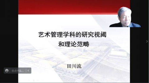 5月11日下午,艺术学系名家大讲堂系列讲座第四期通过线上、线下相结合的方式顺利举办。艺术学系特聘教授田川流作了题为《艺术管理学科的研究视阈及理论范畴》的专题讲座。来自中国艺术研究院、英国伦敦大学金史密斯学院、长沙理工大学的校外专家、学者,我院艺术学系全体教师和本、硕、博各层次学生,共二百余人聆听了讲座,讲座由艺术学系副主任宋蓓主持。