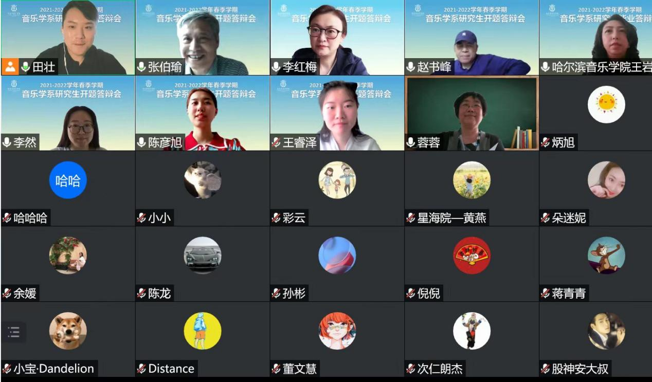 根据教育部、省教育厅和学院关于疫情防控期间研究生培养与学位授予相关工作要求,5月17日至25日,音乐学系通过腾讯会议平台在线上举办了研究生学位论文开题与答辩会共计14场。音乐与舞蹈学专业13位博士研究生和33位硕士研究生参加了学位论文开题与答辩。
