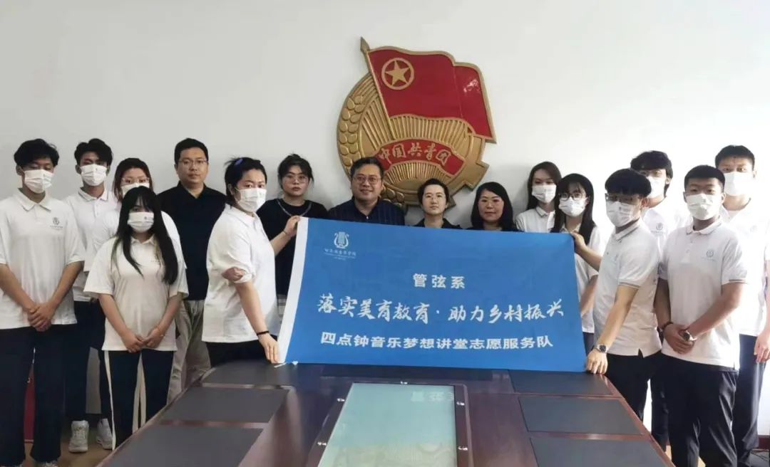 为深入落实《关于开展2022年全国大中专学生志愿者暑期文化科技卫生“三下乡”社会实践活动的通知》要求,引导和帮助广大青年学生上好与现实相结合的“大思政课”,7月15日,管弦系副主任、双簧管教授杨光,管弦系团委书记王鹏飞带领“四点钟音乐梦想讲堂”志愿服务队的10余名志愿者走进双鸭山开展“三下乡”社会实践活动。