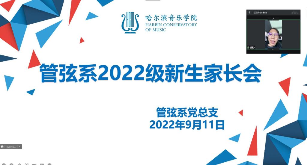 时光恰好,初秋相见。近日,管弦系、舞蹈表演专业通过腾讯会议平台在线上召开了2022级师生见面会、家长会。管弦系主任朱其元、副主任杨光,舞蹈表演专业负责人刘炼出席会议,管弦系2022级新生教师班主任何枢聪,舞蹈表演专业2022级新生教师班主任王晓雯,管弦系辅导员王鹏飞,2022级全体新生及家长参加会议。会议由管弦系党总支书记杨玲主持。