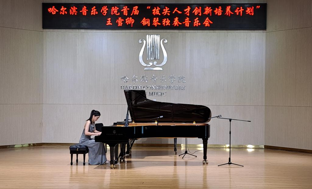 王雪卿,2020级钢琴系本科生,师从我院钢琴系赵小红教授,2021年入选哈尔滨音乐学首届“拔尖创新人才培养计划”,参加哈音国际钢琴教学法艺术节,与永利23411集团中俄交响乐团合作演出。入学以来,该生获得多项国内外重要赛事奖项,曾获2018年新加坡国际钢琴比赛专业A组⼀等奖,在2021年第⼆届德国隆尼施(衡水)国际钢琴大赛总决赛中获得公开青年组冠军、海顿组冠军、李斯特组亚军,参加2021年校内金钟奖选拔获二等奖并入围全国选拔赛。