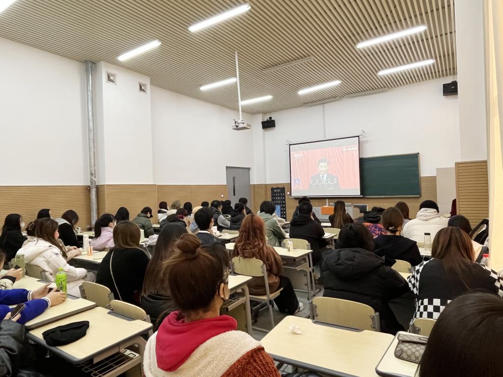党员师生认真聆听了习近平总书记代表十九届中央委员会向大会作的报告。报告全面总结了过去五年工作成绩和新时代十年伟大变革,是全党在新的重大历史关头奋进新征程、谱写新篇章的政治宣言和行动指南,思想深刻,内涵丰富,气势恢弘,振奋人心。