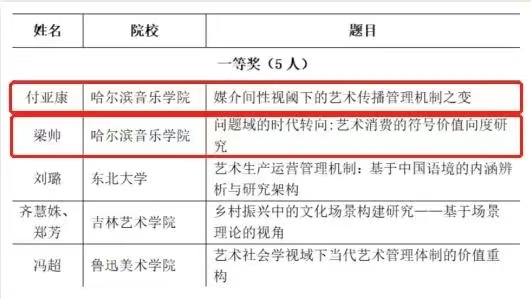 在本届年会论文竞赛中,学院艺术学系青年教师、在站博士后梁帅,艺术学理论专业博士研究生付亚康,硕士研究生颜仁娜的论文脱颖而出,分别获得学术论文竞赛一等奖、三等奖。卓越学术研究成绩集中体现出学院艺术学系崇尚创新、厚植开放、推进共享的学科发展理念和识才、爱才、敬才、用才的人才培养格局。