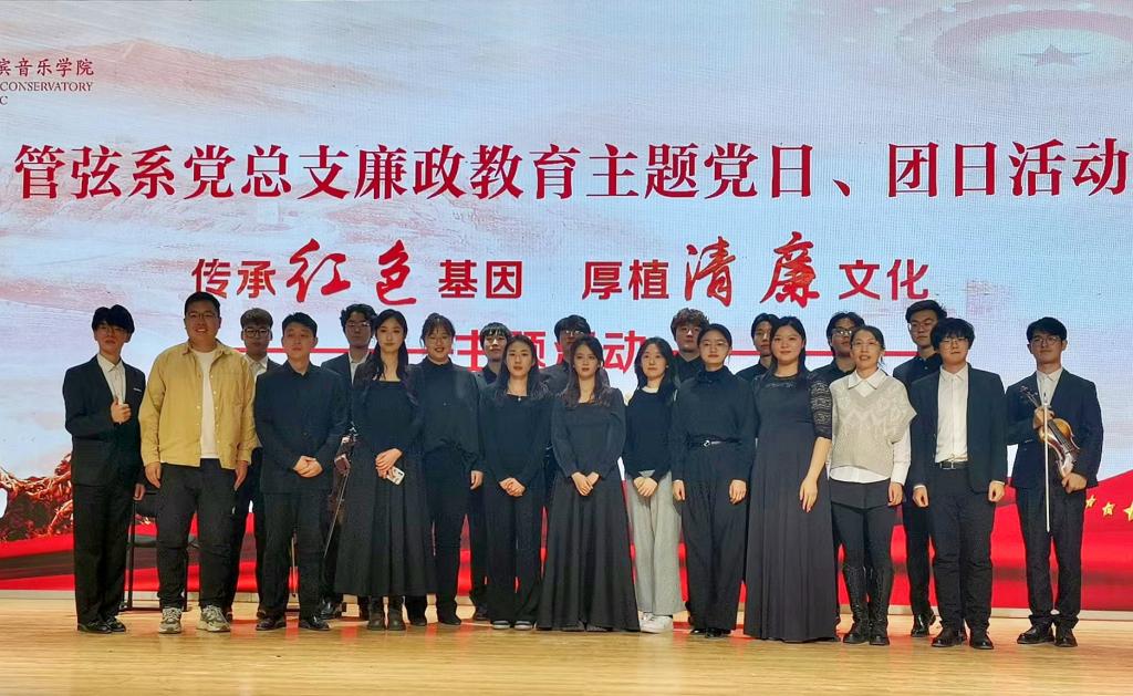 为进一步推动党风廉政建设,筑牢严守党纪国法的思想阵线,促进清廉学校建设,传承红色基因。11月16日,管弦系党总支在主楼A219演奏厅以音乐会的形式开展“传承红色基因 厚植清廉文化”廉政教育主题党日、团日活动。