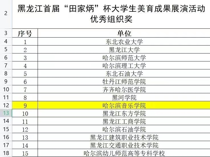近日,黑龙江省首届“田家炳”杯大学生美育成果展演活动评审工作全部结束。学院选送的19部音乐与舞蹈类与3部美术作品,共荣获2个一等奖、4个三等奖和5个优秀奖;索帅、栾岚、白栋梁3位教师被授予“优秀指导教师”荣誉称号;学院作为音乐与舞蹈类专业组获奖最多的单位,荣获“优秀组织奖”。