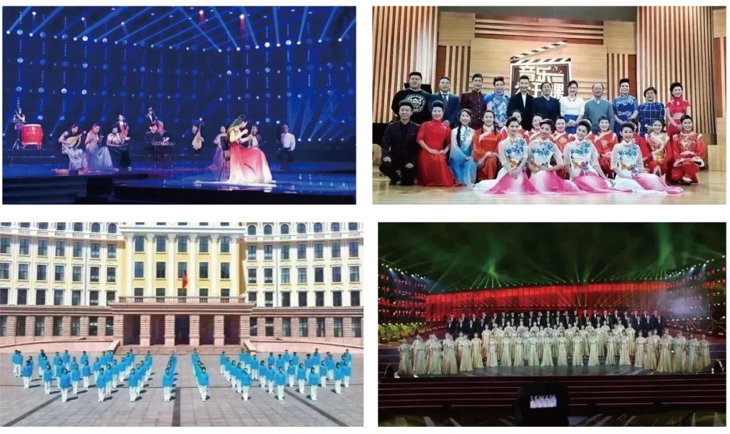 长期以来,学院师生积极开展艺术实践,多次参与央级各类媒体演出及节目录制。包括师生参与录制央视《歌声与微笑》、《向幸福出发》和《音乐公开课》等栏目,弦歌合唱团参与《合唱春晚》特别节目录制,音诗画《青春的对白》参与五四青年特别节目《奋斗的青春》录制,民乐系主任姜克美带领民族室内乐团录制央视《风华国乐》节目,管弦系青年教师史博雅参与冬残奥会闭幕式演出,钢琴系主任元杰参与央视十·一特别节目“2022·江山如画交响音乐会”演出等,通过央视各大频道播出,收获社会各界的一致好评。