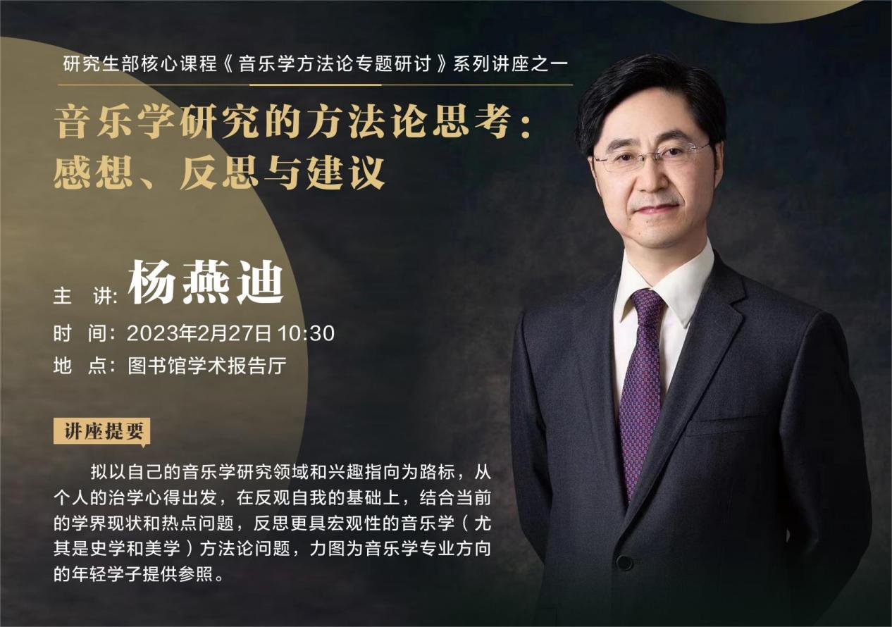 杨燕迪长期致力于音乐学方法论、西方音乐史、音乐美学、歌剧研究、音乐批评与分析、音乐学术翻译、中国现当代音乐评论、音乐表演艺术研究等多个专门化领域研究,本次讲座也作为学院与星海音乐学院交流机会,展现了学院的学术水平,增进了两院友谊。