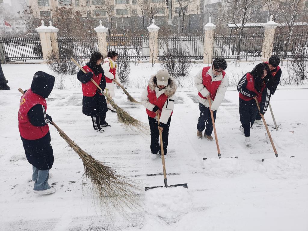 活动中,学生们以实际行动学习雷锋精神,发扬“奉献、友爱、互助、进步”的志愿者精神,齐心协力,配合默契,忙碌的身影构成了一道亮丽的风景线,营造团结、互助、友爱、和谐的氛围。经过几小时的奋力清扫,积雪积冰情况得到缓解。