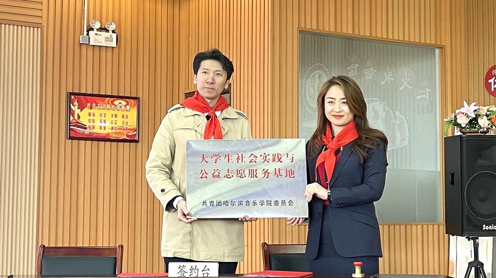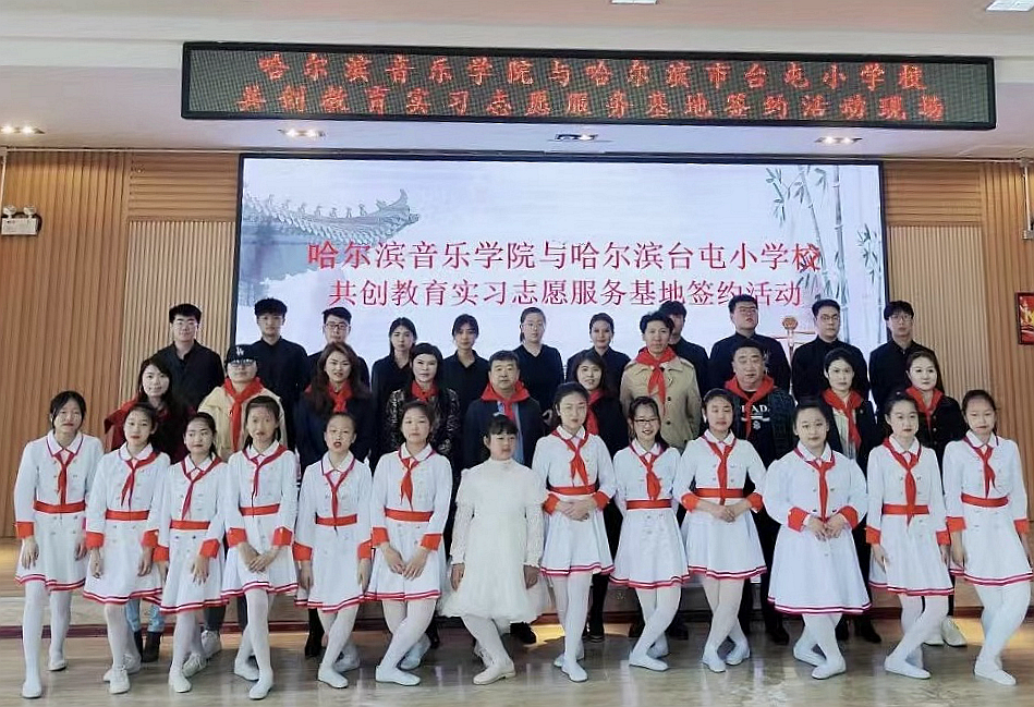 双方在台屯小学校举办签约仪式。松北区政协秘书长田文彬、唐海燕、高云剑、臧婷,民乐钢琴联合党总支书记张冰出席签约仪式。民乐系师生代表参加意识。民乐系副主任索帅与台屯小学校长李春雪代表双方单位签署了实践基地合作协议。