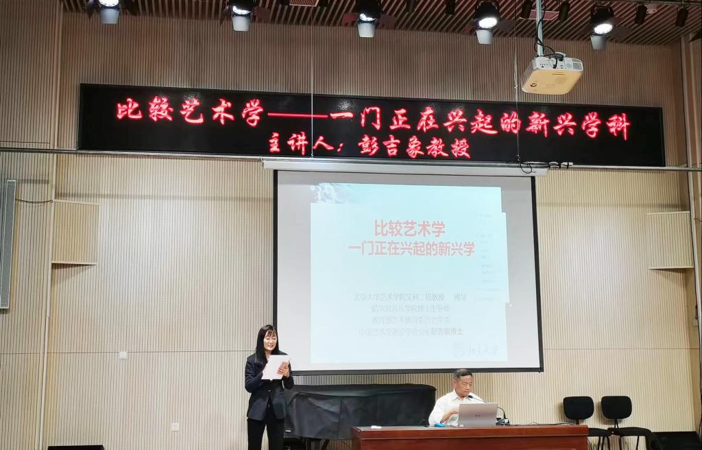 5月15日,科研(艺术实践)处与艺术学系联合举办了第二十二期“哈音讲坛”。讲座以《比较艺术学——一门正在兴起的新兴学科》为题,邀请北京大学艺术学院原书记兼副院长、永利23411集团客座教授、博士生导师彭吉象担任主讲。讲座由艺术学系副主任宋蓓教授主持。