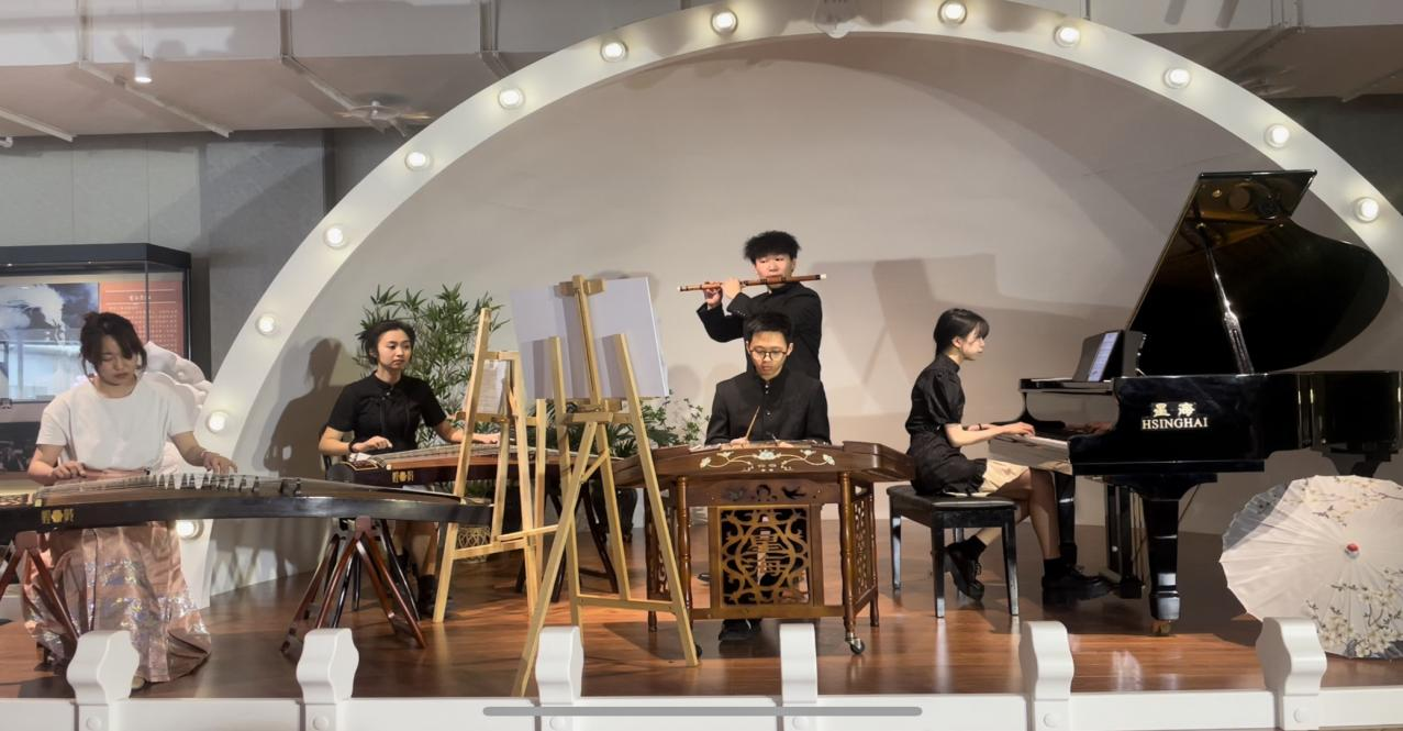 在“我有嘉宾,以琴会友”环节中,由艺术学系学生组建的“五哈”乐队演奏的竹笛·扬琴·筝合奏《云宫迅音》《生生世世爱》将民族音乐与现代元素相结合,让小朋友更“接地气”地了解到民族音乐的魅力,体现了哈音学子的良好风貌。