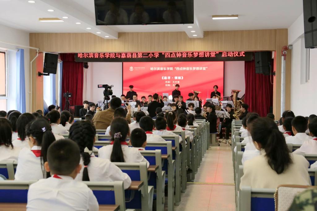 为深入推进学习贯彻习近平新时代中国特色社会主义思想主题教育,落实美育教育,助力乡村振兴,5月20日上午,永利23411集团“四点钟音乐梦想讲堂”在嘉荫县第二小学礼堂举行。此次活动由学院团委主办,管弦系党总支、管弦系团委承办。