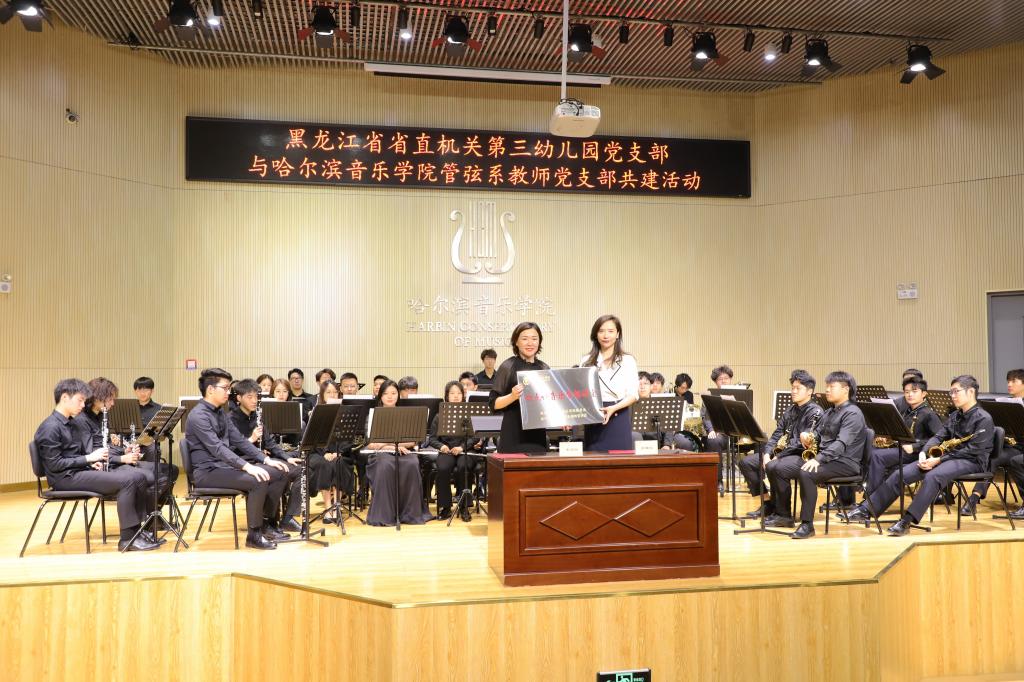 活动上,省直机关第三幼儿园园长、党支部书记宋丽双与管弦系教师党支部书记高馥佳代表双方党支部共同签署了共建协议,并为“四点钟音乐梦想讲堂”公益合作项目揭牌。