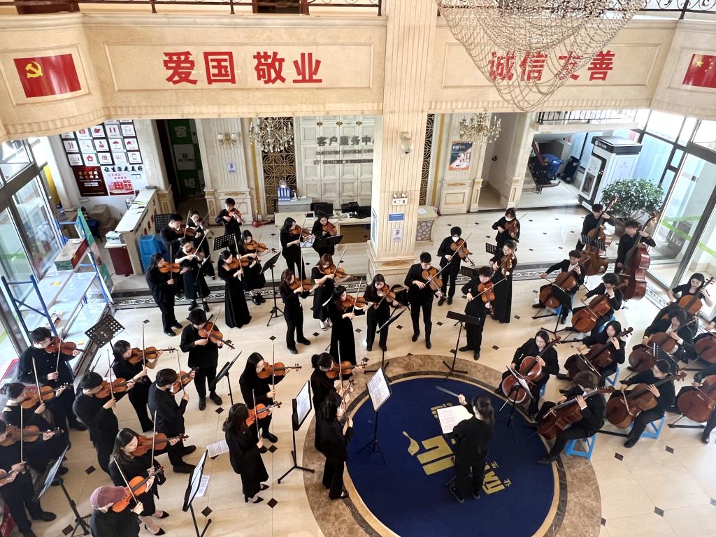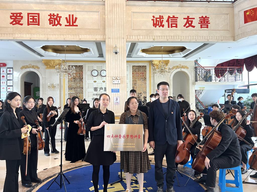 为深入推进学习贯彻习近平新时代中国特色社会主义思想主题教育,推动主题教育进社区,5月24日上午,管弦系党总支“四点音乐梦想讲堂”主题教育红色宣讲走进哈西社区,在哈西街道柒零捌零社区大堂举办了专题音乐党课。此次音乐党课由管弦系党员教师:副教授李鑫担任主讲人,由管弦系弦乐室内乐团演奏。