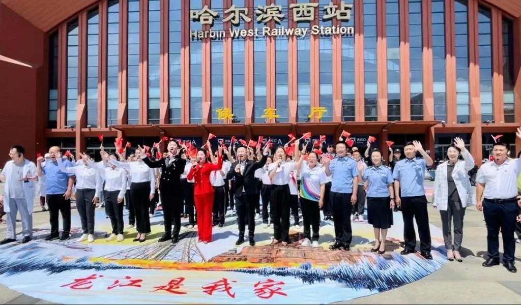 此次活动以“快闪”形式呈现,伴随着清脆悠扬的歌声,街舞青年用炫酷的舞姿拉开了活动序幕,吸引了往来旅客驻足观看。我院师生领唱黑龙江共青团原创歌曲《龙江是我家》,嘹亮的歌声缭绕在候车大厅,吸引了周围旅客的围观,唤起了广大群众爱省爱国的情怀。