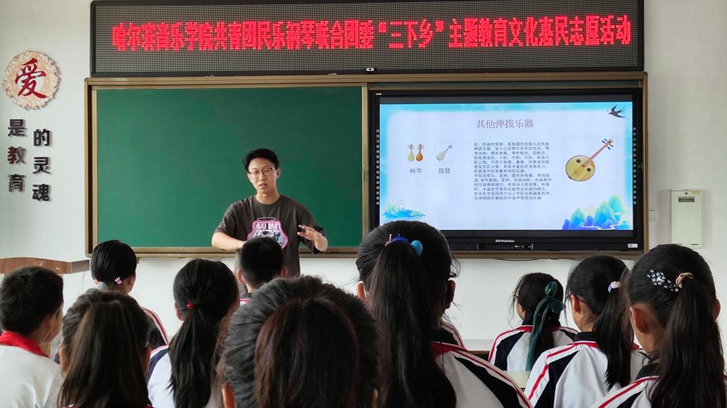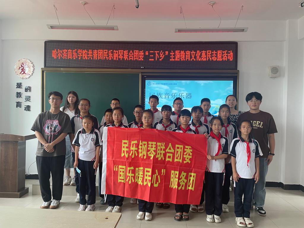 民乐钢琴联合团委此次“三下乡”社会实践活动通过多种形式,让青年学生上好“大思政课”,引导团员青年发挥专业优势,在社会课堂中受教育、长才干、做贡献;为农村儿童带来丰富多彩的素质教育活动,为发展乡村美育、助力乡村振兴,贡献“哈音力量”。