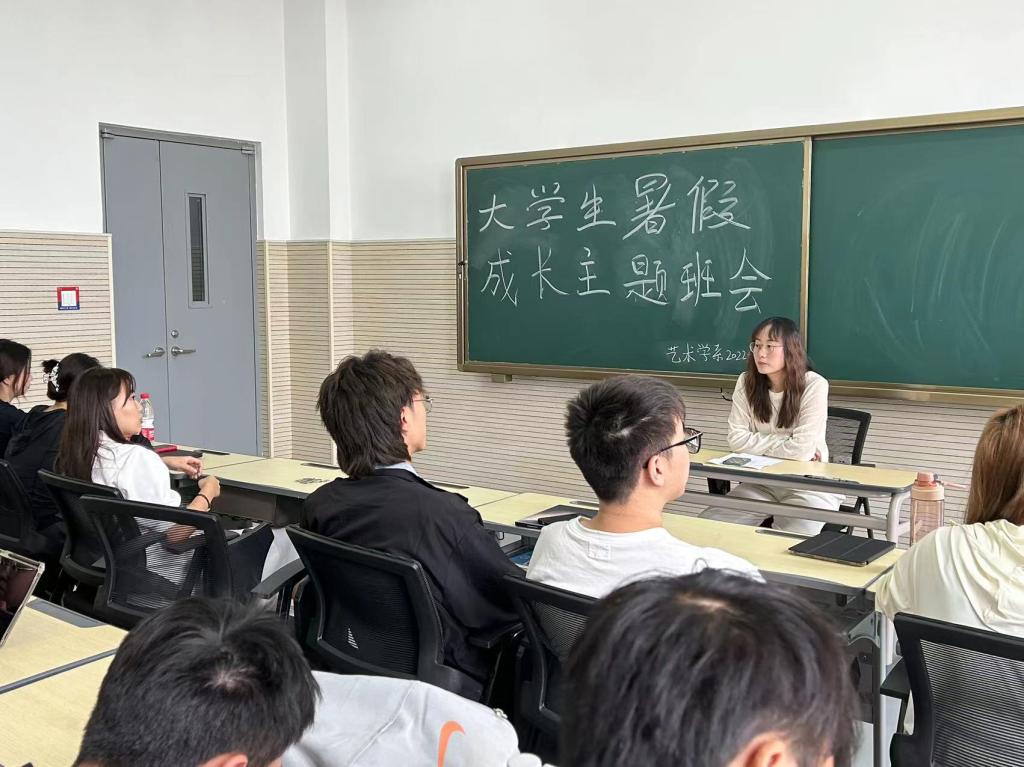 近日,艺术学系党总支召开“缤纷假日齐实践·致乐崇德伴成长”大学生暑期成长见闻分享会,2021级与2022级全体本科生参加分享会。分享会由艺术学系辅导员郭宏月主持。