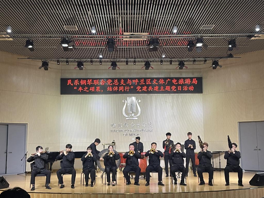 为持续推进主题教育和“工作落实年”,深化能力作风建设,加强师德师风宣传教育,营造尊师重教良好氛围,9月13日,民乐钢琴联合党总支与呼兰区文体广电旅游局举办“丰之硕果,结伴同行”党建共建主题党日活动。作为党总支迎评促建加强学风建设开展新生入学教育系列活动之一,在本次活动上,呼兰区文体广电旅游局副局长孙昊阳、呼兰区文化馆馆长王梓等文旅单位20余名党员干部、文艺工作者,与党总支党员干部师生、全体2023级新生共同观看了由民乐党支部策划举办的专场音乐会。