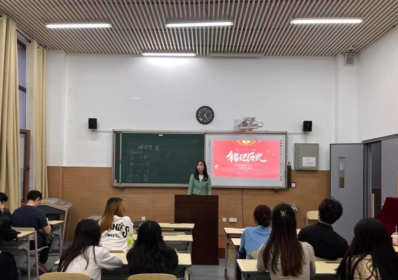 为使团员青年感悟中华民族自强不息、愈挫愈勇的奋斗精神,体悟东北抗战英雄奋勇抵抗、不屈不挠的抗战精神,从苦难中汲取智慧,从耻辱中迸发力量,9月18日,作曲系团委在主楼103开展“铭记历史”纪念“九一八”事变92周年主题团日活动。作曲系团委书记、辅导员夏雨欣主持。